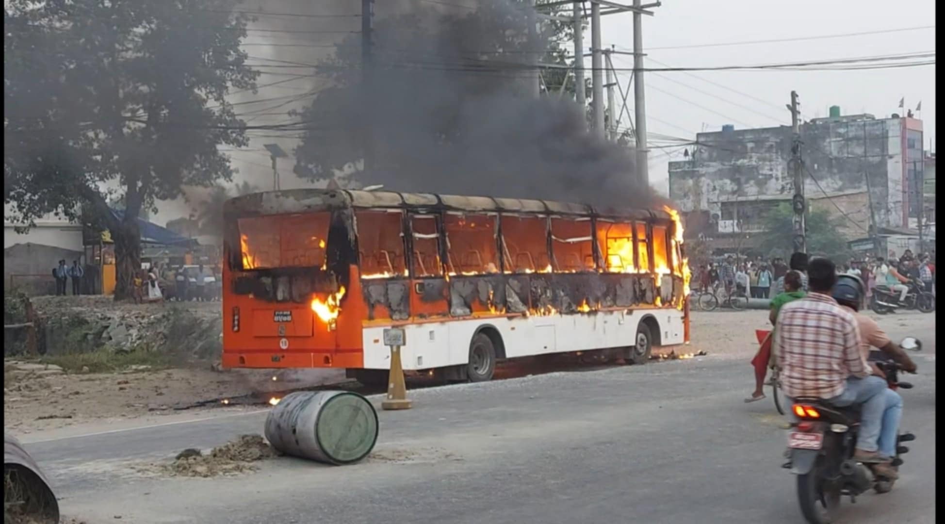 दुर्घटना गराएर भागेको बसलाई आक्रोशित स्थानीयले ५ सय मिटर पर पुगेर आगो लगाएका छन् ।